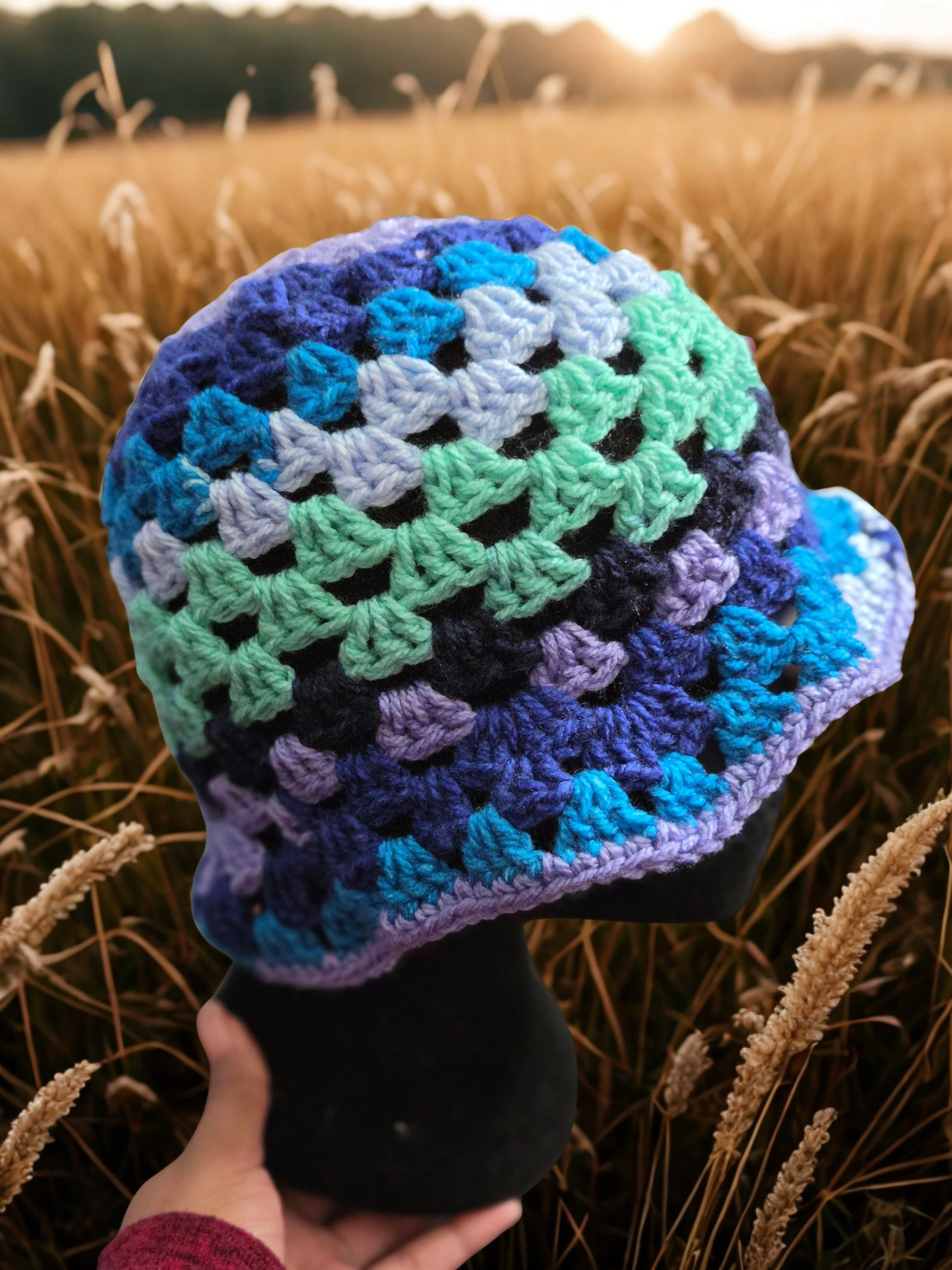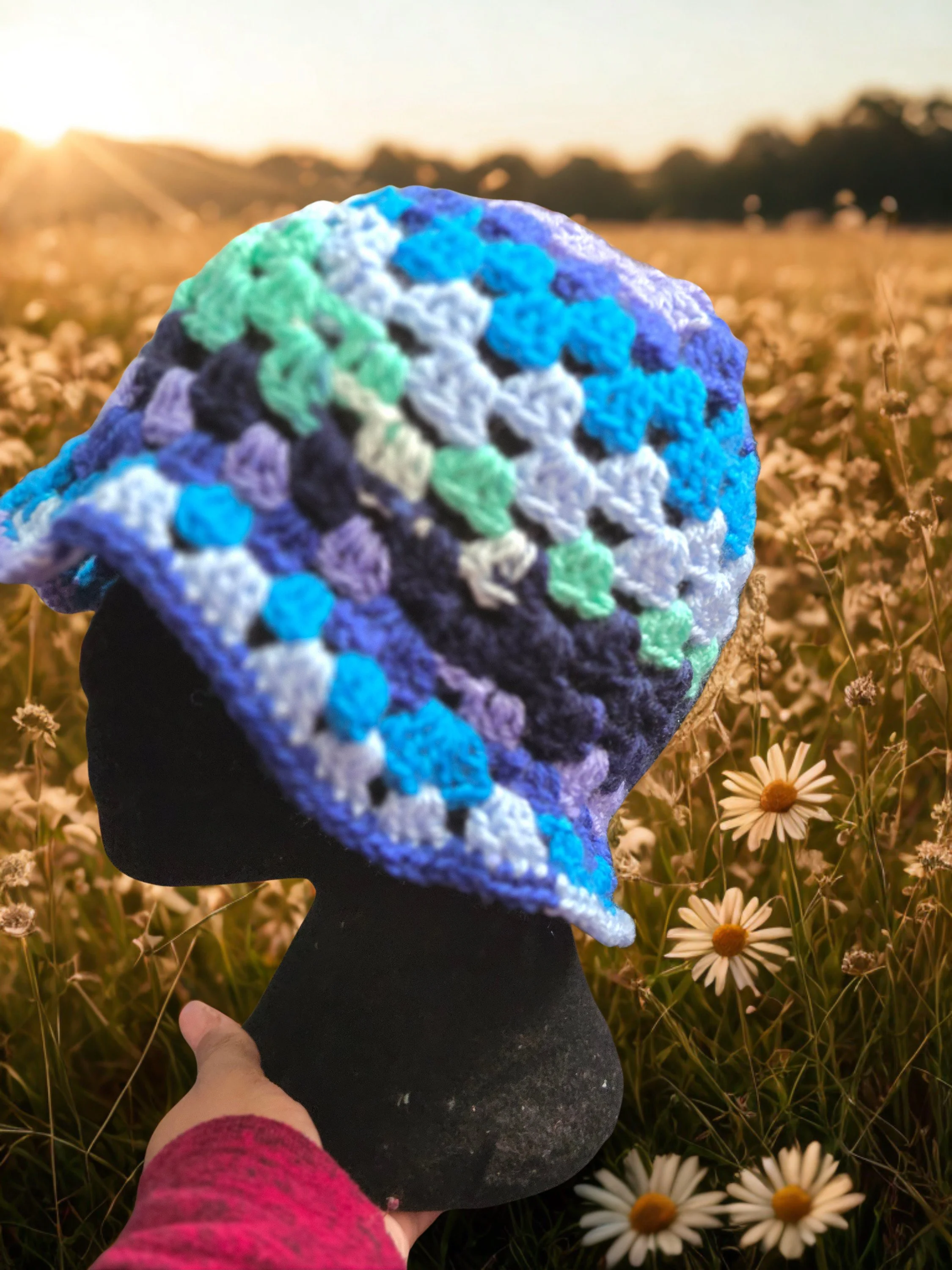 Multicolor Adult Size Small–Medium Bucket Hat — Lightweight Crocheted Summer Hat — Ready to Ship