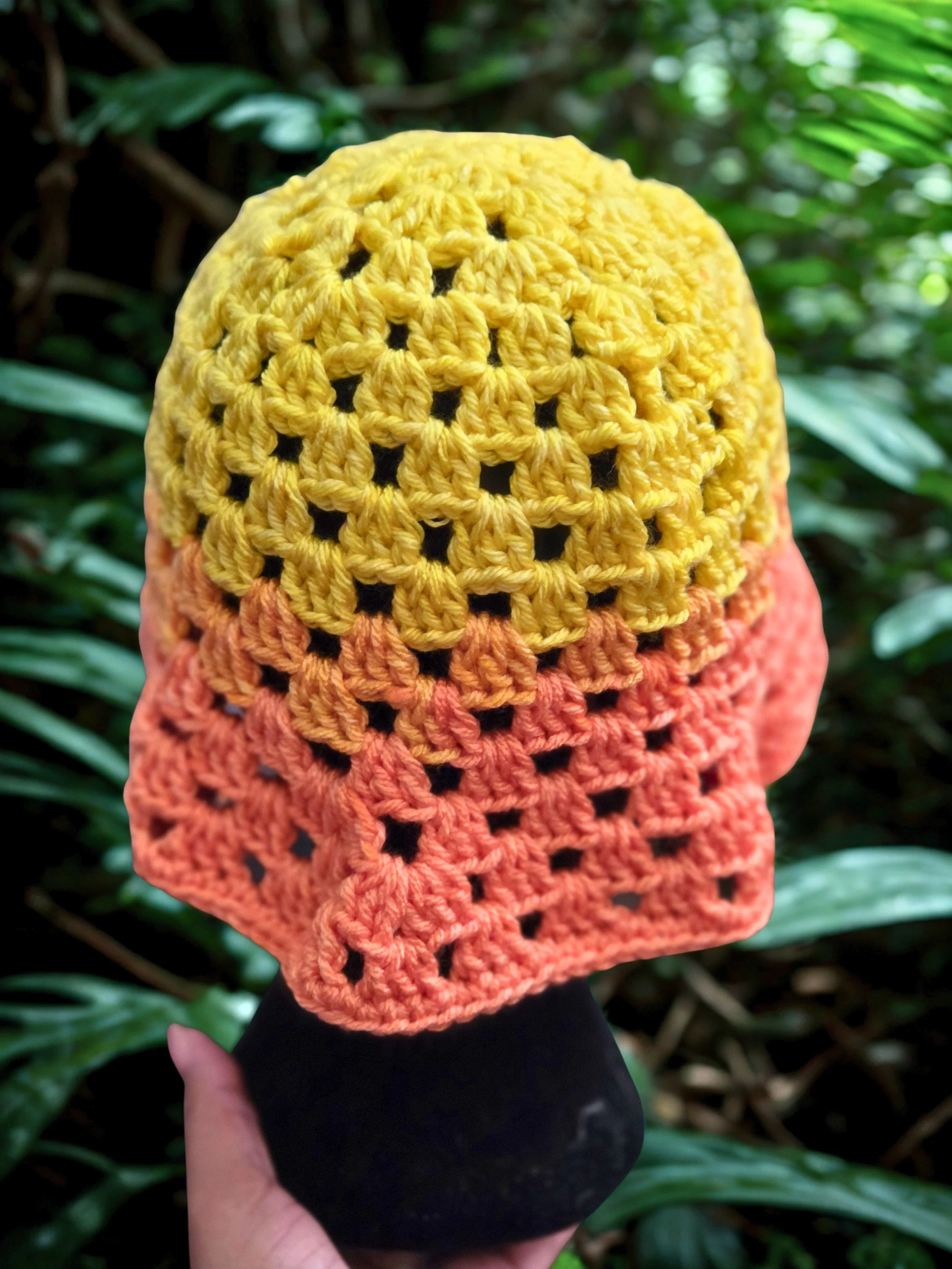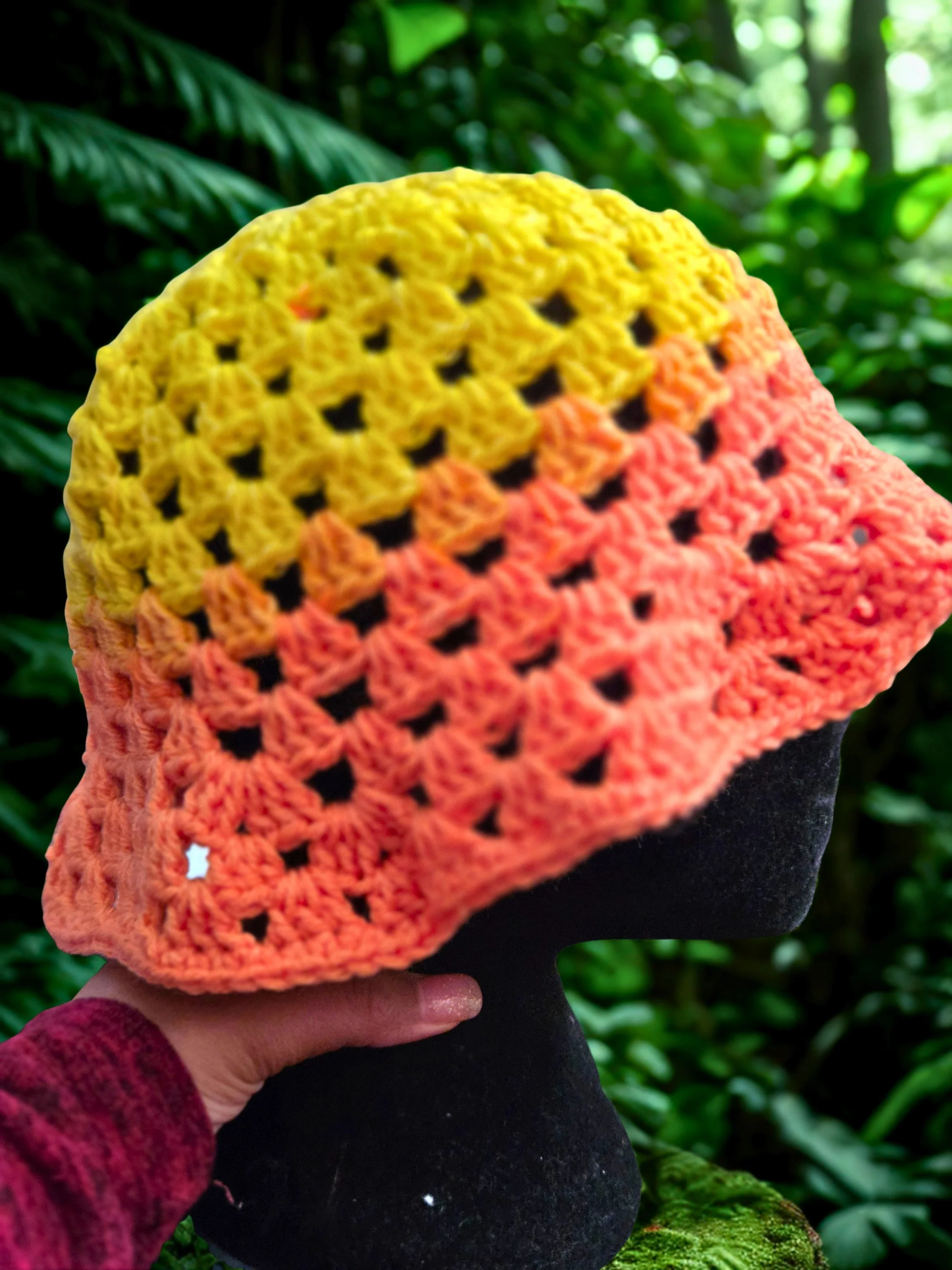 Yellow Ombre Lightweight Crochet Bucket Hat — Adult Size S/M — Ready to Ship